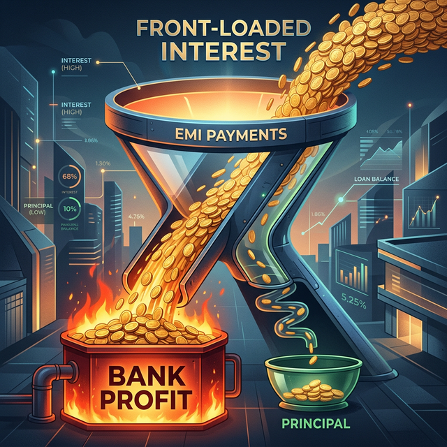 - The Mechanism: This is called 'Front-Loading'. Banks calculate interest on the outstanding principal, which is highest at the start of the loan.