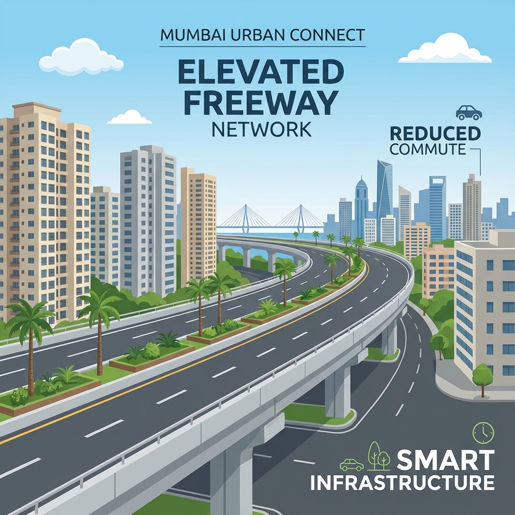 The Airoli-Katai Naka Freeway is arguably the most significant road infrastructure project for Dombivli and Kalyan residents. This 12.3 km, six-lane access-controlled elevated highway will connect the Airoli Bridge directly to Katai Naka, slashing travel time and opening up new real estate opportunities.