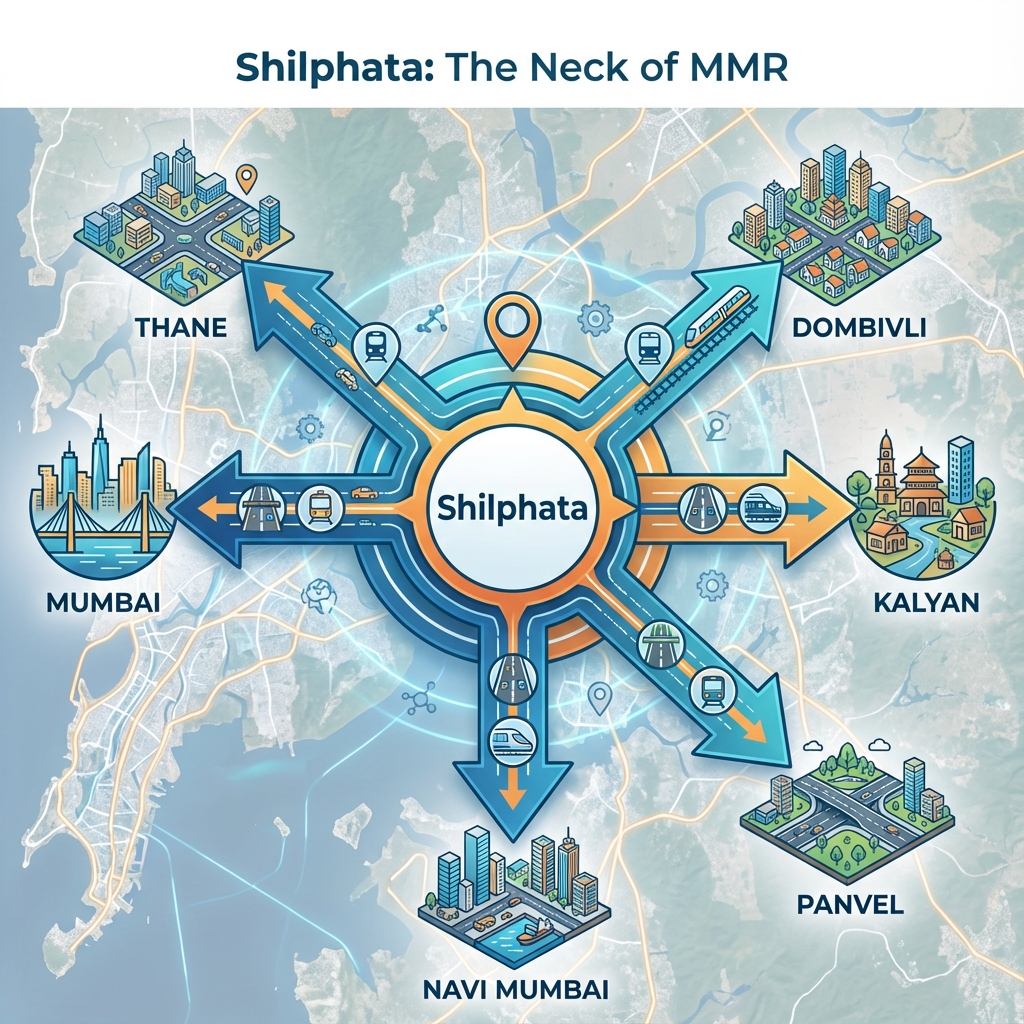 If you look at a map of MMR, one location stands out as the chokepoint connecting everything: **Shilphata**. Situated between Mumbai, Navi Mumbai, Thane, Dombivli, and Kalyan, this once-sleepy junction is now the epicenter of a massive infrastructure transformation.
